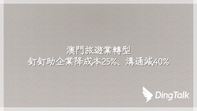 澳門旅遊業轉型:釘釘助企業降成本25%、溝通減40%