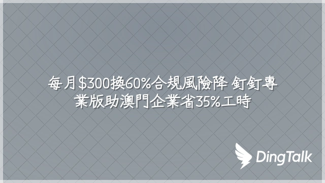 每月$300換60%合規風險降 釘釘專業版助澳門企業省35%工時