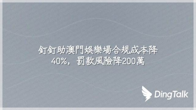 釘釘助澳門娛樂場合規成本降40%,罰款風險降200萬