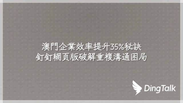 澳門企業效率提升35%秘訣:釘釘網頁版破解重複溝通困局