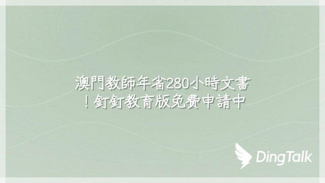 澳門教師年省280小時文書!釘釘教育版免費申請中