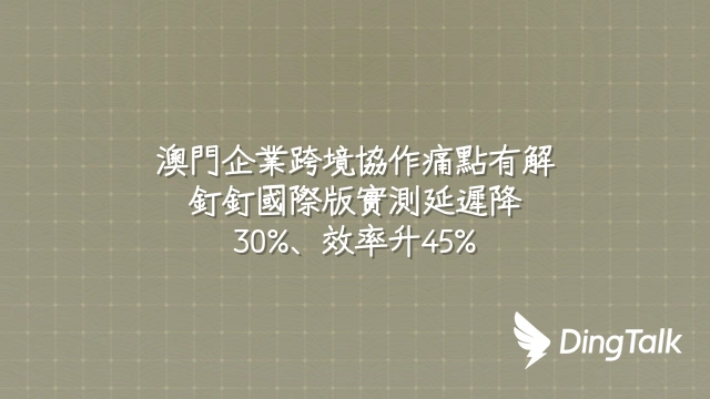 澳門企業跨境協作痛點有解:釘釘國際版實測延遲降30%、效率升45%