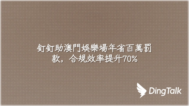 釘釘助澳門娛樂場年省百萬罰款,合規效率提升70%