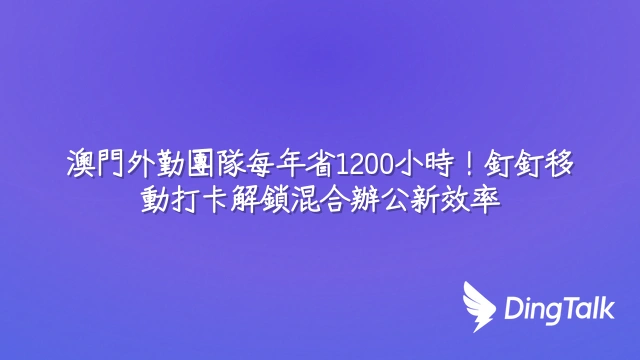 澳門外勤團隊每年因傳統考勤損失超過1,200小時管理工時。釘釘移動打卡以技術重建信任,讓出勤數據即時可用,助力企業邁向混合辦公新常態。