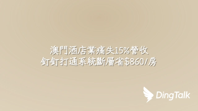 澳門酒店業痛失15%營收?釘釘打通系統斷層省$860/房