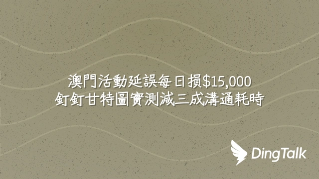 在澳門綜合度假村,一通報修電話曾需轉手4人、耗時4小時。如今,釘釘將跨部門協作壓縮至分鐘級,並以AI驅動多語言調度,釋放每年近萬人工時。這不只是效率革命,更是服務資產的重構。