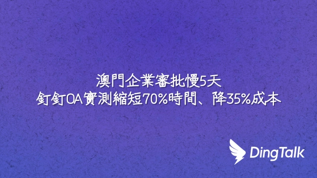 澳門企業審批慢5天?釘釘OA實測縮短70%時間、降35%成本