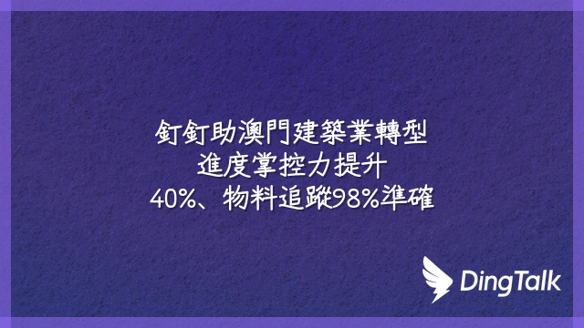 釘釘助澳門建築業轉型:進度掌控力提升40%、物料追蹤98%準確