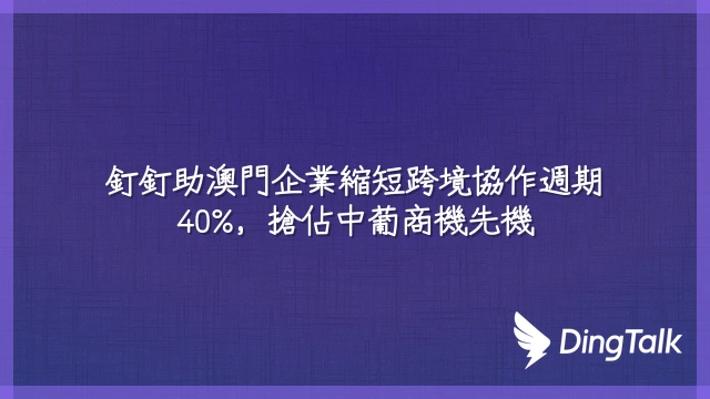 釘釘助澳門企業縮短跨境協作週期40%,搶佔中葡商機先機