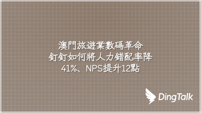 澳門旅遊業數碼革命:釘釘如何將人力錯配率降41%、NPS提升12點