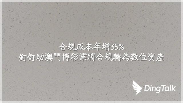 合規成本年增35%?釘釘助澳門博彩業將合規轉為數位資產