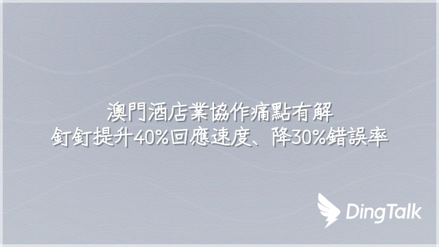 澳門酒店業協作痛點有解:釘釘提升40%回應速度、降30%錯誤率
