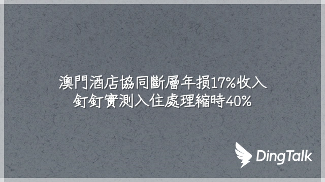 澳門酒店協同斷層年損17%收入?釘釘實測入住處理縮時40%