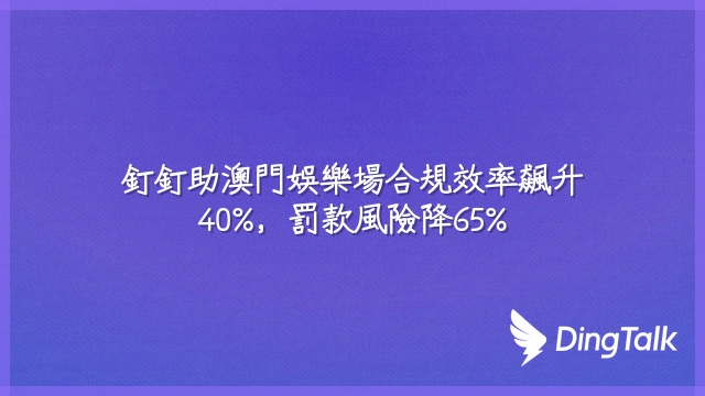 釘釘助澳門娛樂場合規效率飆升40%,罰款風險降65%