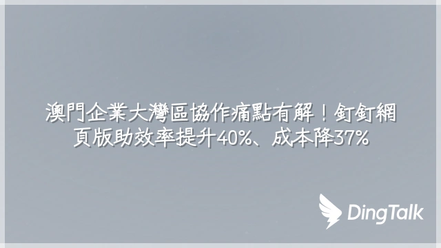 澳門企業大灣區協作痛點有解!釘釘網頁版助效率提升40%、成本降37%