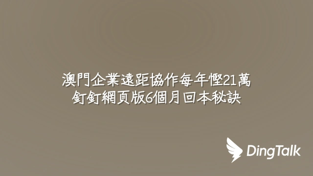 澳門企業遠距協作每年慳21萬?釘釘網頁版6個月回本秘訣