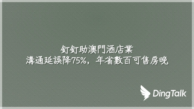 釘釘助澳門酒店業:溝通延誤降75%,年省數百可售房晚
