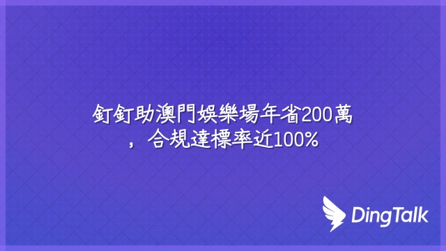 釘釘助澳門娛樂場年省200萬,合規達標率近100%