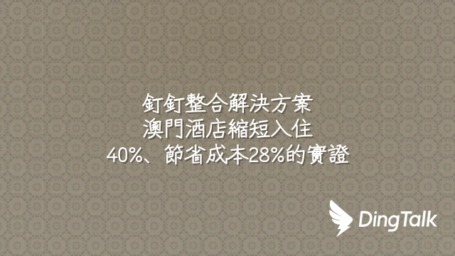 釘釘整合解決方案:澳門酒店縮短入住40%、節省成本28%的實證