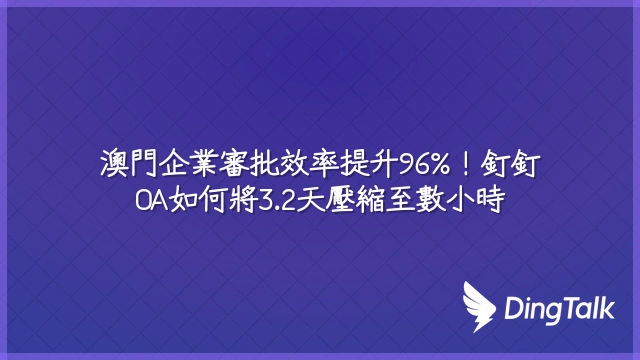 傳統審批拖慢3.2天? 釘釘OA系統將流程壓縮至數小時內完成,實測效率提升超50%。從零售到金融,看看澳門企業如何靠數位化決策贏回時間與利潤。