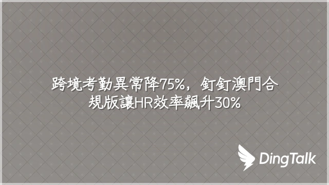 跨境考勤異常降75%,釘釘澳門合規版讓HR效率飆升30%