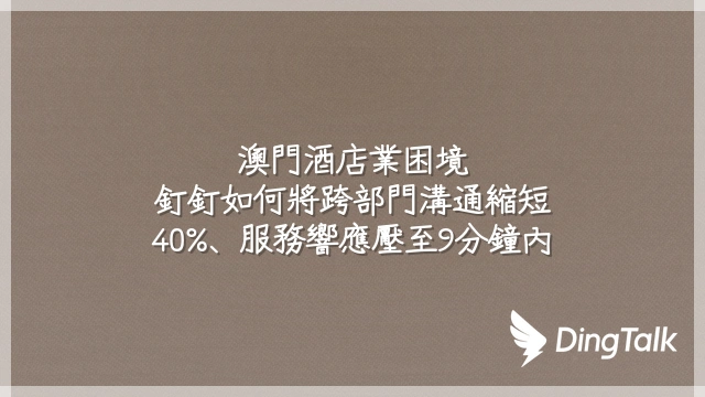 澳門酒店業困境:釘釘如何將跨部門溝通縮短40%、服務響應壓至9分鐘內