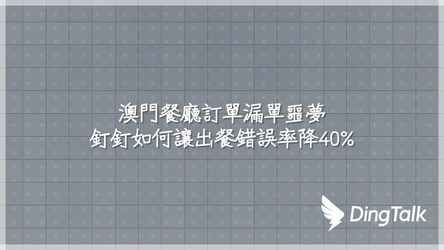 澳門餐廳訂單漏單噩夢?釘釘如何讓出餐錯誤率降40%