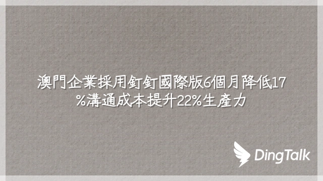 澳門企業採用釘釘國際版6個月降低17%溝通成本提升22%生產力