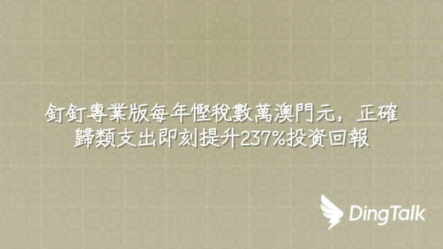 釘釘專業版每年慳稅數萬澳門元,正確歸類支出即刻提升237%投資回報