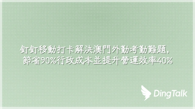 釘釘移動打卡解決澳門外勤考勤難題,節省90%行政成本並提升營運效率40%