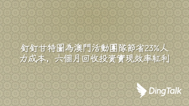 釘釘甘特圖為澳門活動團隊節省23%人力成本,六個月回收投資實現效率紅利