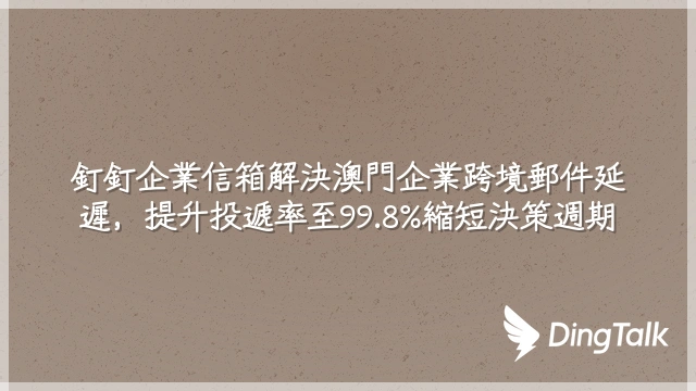 釘釘企業信箱解決澳門企業跨境郵件延遲,提升投遞率至99.8%縮短決策週期