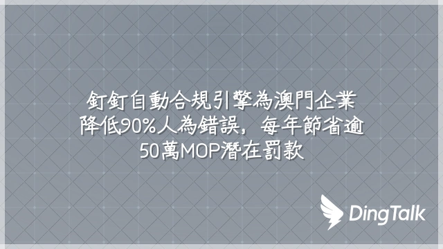 釘釘自動合規引擎為澳門企業降低90%人為錯誤,每年節省逾50萬MOP潛在罰款