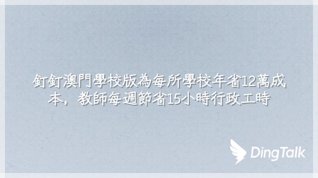 釘釘澳門學校版為每所學校年省12萬成本,教師每週節省15小時行政工時