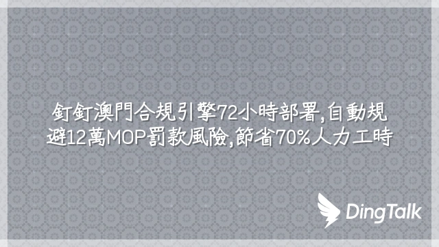 釘釘澳門合規引擎72小時部署,自動規避12萬MOP罰款風險,節省70%人力工時