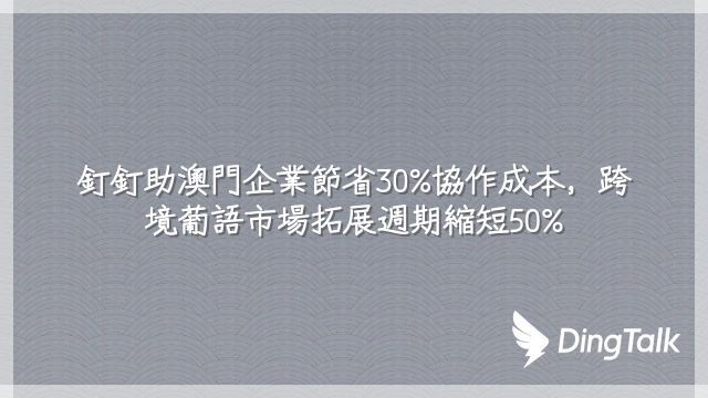 釘釘助澳門企業節省30%協作成本,跨境葡語市場拓展週期縮短50%