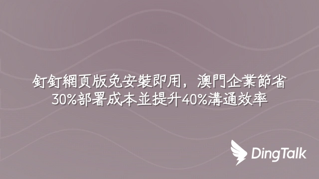 釘釘網頁版支援免安裝即用,降低IT部署成本30%,幫助澳門企業解決溝通碎片化問題。立即掌握高效遠程協作秘訣!