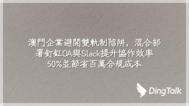 澳門企業避開雙軌制陷阱,混合部署釘釭OA與Slack提升協作效率50%並節省百萬合規成本