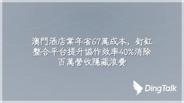 澳門酒店業年省67萬成本,釘釭整合平台提升協作效率40%消除百萬營收隱藏浪費