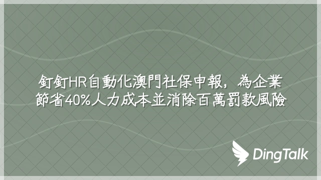 手動處理澳門社保申報耗時易錯?釘釘HR透過API直連政府系統,實現薪酬自動計算與合規申報,為企業節省逾40%人力成本,並降低罰款風險。