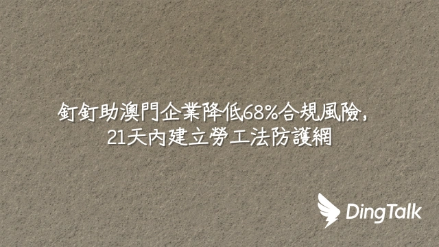 釘釘助澳門企業降低68%合規風險,21天內建立勞工法防護網