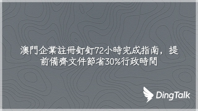 澳門企業註冊釘釘72小時完成指南,提前備齊文件節省30%行政時間
