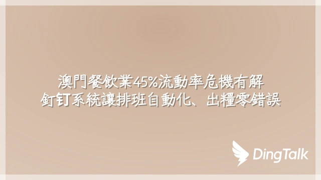 澳門餐飲業人力危機加劇,流動率高達45%。釘钉智能系統助連鎖品牌實現排班自動化、出糧零錯誤,釋放管理紅利。