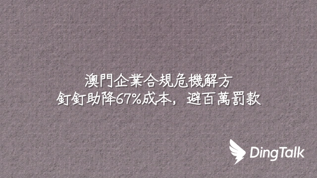 澳門企業合規危機解方:釘釘助降67%成本,避百萬罰款