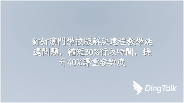 釘釘澳門學校版解決遠程教學延遲問題,縮短30%行政時間,提升40%課堂參與度