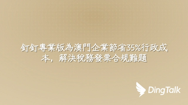 釘釘專業版為澳門企業節省35%行政成本,解決稅務發票合規難題