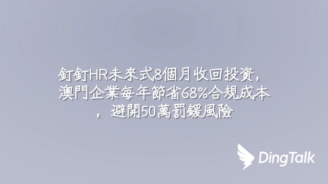 釘釘HR未來式8個月收回投資,澳門企業每年節省68%合規成本,避開50萬罰鍰風險