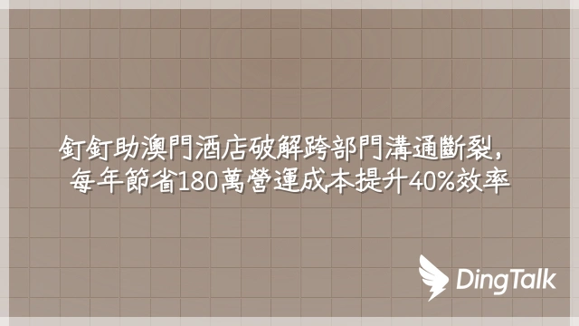 釘釘助澳門酒店破解跨部門溝通斷裂,每年節省180萬營運成本提升40%效率