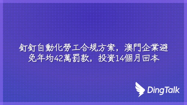 釘釘自動化勞工合規方案,澳門企業避免年均42萬罰款,投資14個月回本
