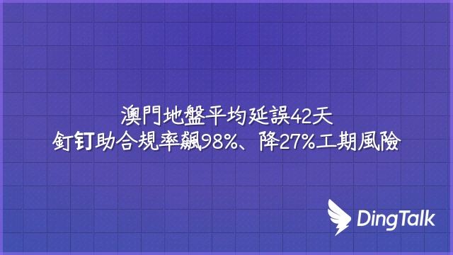 澳門地盤正面臨延誤與合規雙重壓力。平均42天延誤,每多一天損失近9萬港元。釘钉整合低代碼、AI與地理圍欄技術,降低27%工期風險,提升合規率至98%,重塑工程管理常態。